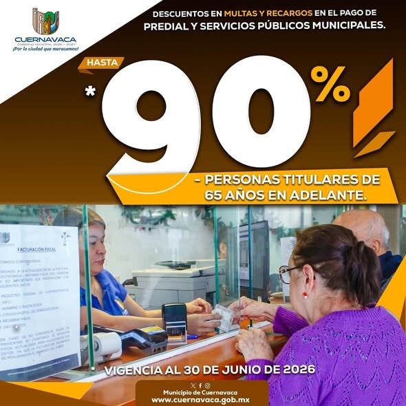 Si aún no has podido regularizar el pago de tu predial y servicios públicos municipales, el Ayuntamiento de #Cuernavaca te invita a aprovechar importantes descuentos en multas y recargos de años anteriores.